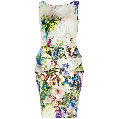 | Blue Floral Print Structured Peplum Dress by River Island |